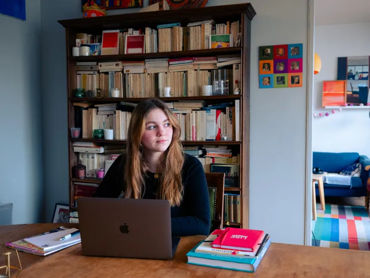 En janvier, je me suis inscrite sur la plateforme Parcoursup pour formuler mes vœux d’orientation. Je suis intéressée par plusieurs écoles, comme Sciences Po, mais aussi des doubles filières à la Sorbonne qui mêlent Lettres Modernes et Allemand. Je vais demander une licence « de sécurité » à Caen même si je n’ai pas forcément envie d’y rester pour mes études. Pour l’instant, je suis un peu dans le déni. (Rires.) J’essaye de mettre ce sujet de côté le plus longtemps possible même si, évidemment, je vais devoir m’y pencher. C’est un sujet récurrent avec mes parents, qui savent que sinon je ne m’en préoccuperais pas assez. Ils peuvent m’aider dans la rédaction de mes lettres de motivation, ce qui n’est pas le cas de tout le monde. C’est stressant de ne pas connaître les critères de recrutement. J’ai l’impression qu’avec le contrôle continu, tout a un enjeu maintenant. Les épreuves sont moins décisives à la fin de l’année et donc certains se battent pour un demi-point… Tout devient démesuré, même si je trouve que les professeurs sont assez justes en général dans leur notation. Il est aussi possible de valoriser ses activités personnelles sur la plateforme avec la fiche « Avenir ». Depuis cette année, je suis cheffe chez les Louvettes au sein des Scouts d’Europe. Cela demande de l’investissement mais reste compatible avec mon quotidien au lycée.