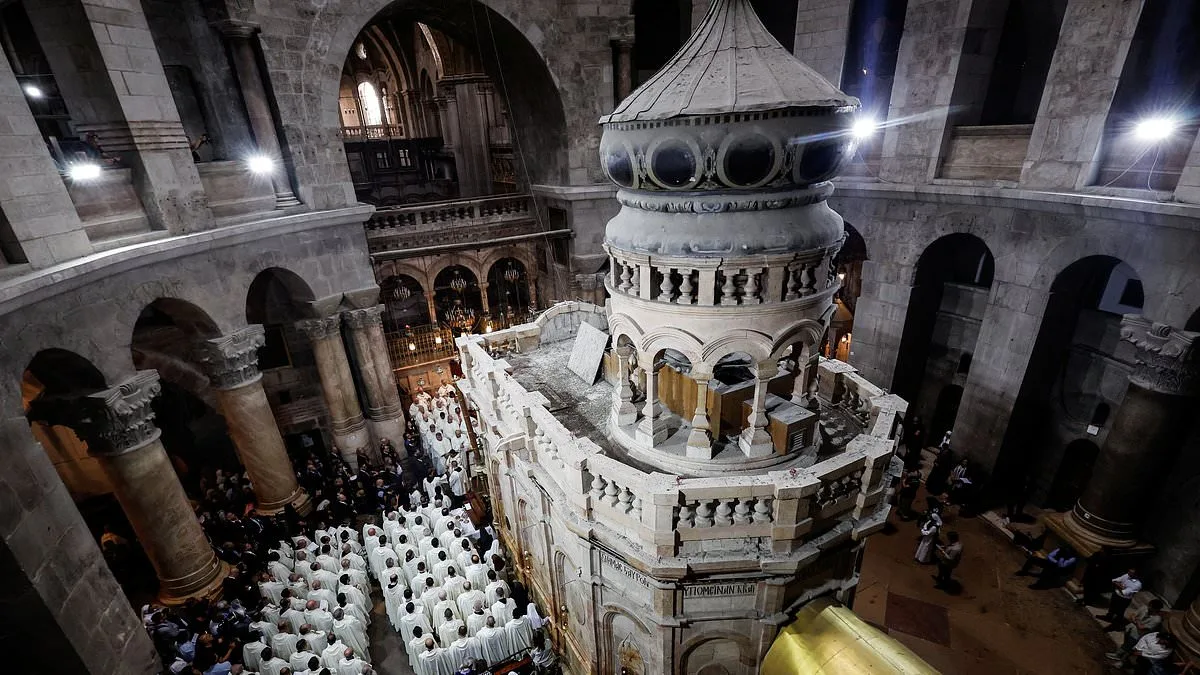 La fermeture de l'église du Saint-Sépulcre pendant la Semaine Sainte a suscité des craintes que les prophéties bibliques concernant l'Antéchrist soient sur le point de se réaliser. Construit sous l'empereur romain Constantin, ce sanctuaire de près de 1700 ans est considéré comme le lieu de la crucifixion, de l'inhumation et de la résurrection de Jésus. Des milliers de fidèles et de touristes visitent ce site pendant la Semaine Sainte, et le nombre de participants à la cérémonie de la Sainte-Lumière du samedi saint atteint souvent 10 000 personnes les années où l'affluence est la plus importante. Des missiles balistiques iraniens ont explosé au-dessus de Jérusalem, dispersant des débris dans plusieurs quartiers de la ville, dont à proximité de l'église du Saint-Sépulcre, ce qui a contraint les autorités israéliennes à fermer indéfiniment les portes sacrées, ainsi que l'accès à tous les lieux saints de la région. Bien que cette mesure sans précédent soit consécutive à une guerre, certains observateurs ont souligné des passages du livre de l'Apocalypse qui décrivent une période de troubles et de persécutions dans les derniers jours, notamment "là où aussi leur Seigneur a été crucifié".