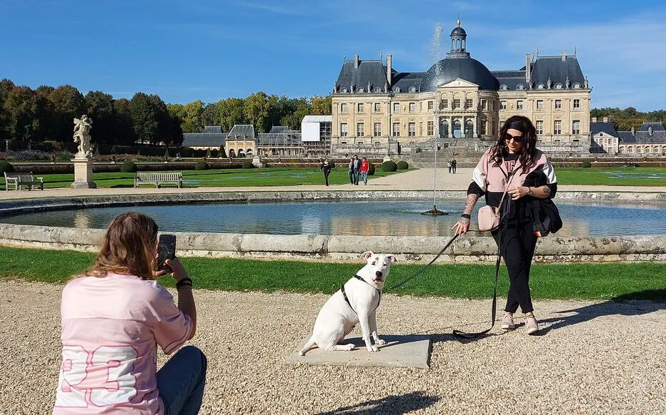 Les chiens découvrent les jardins à la française du château de Vaux-le-Vicomte